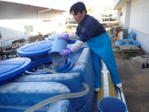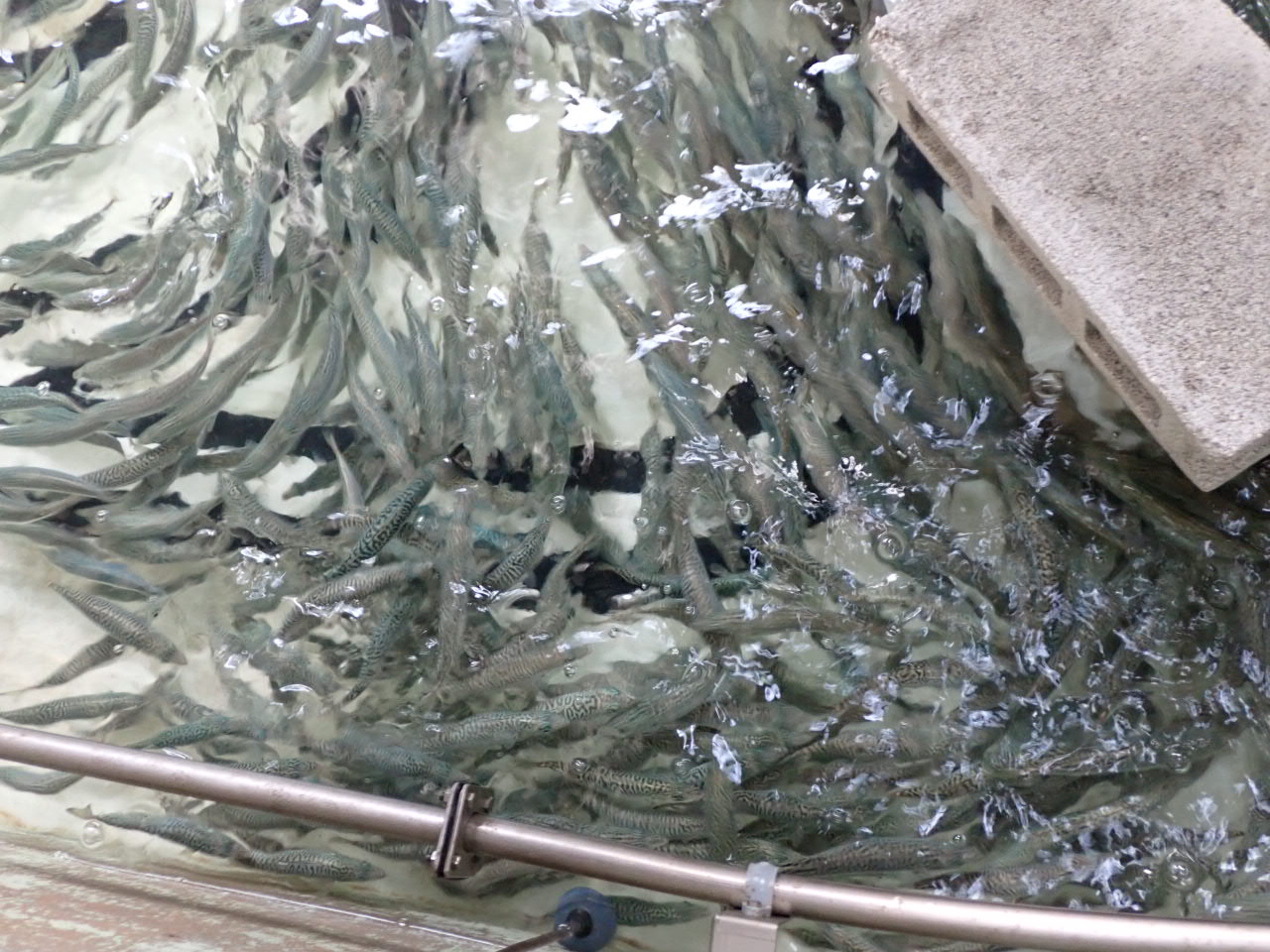昨年6月に採卵し、養殖用種苗として育成してきたマサバ種苗1,677尾を那珂湊漁港内の海面いけすに移送しました。いけす内で出荷サイズになるまで成長させた後、茨城県産水産物ブランド「常陸乃国まさば」として販売されます。